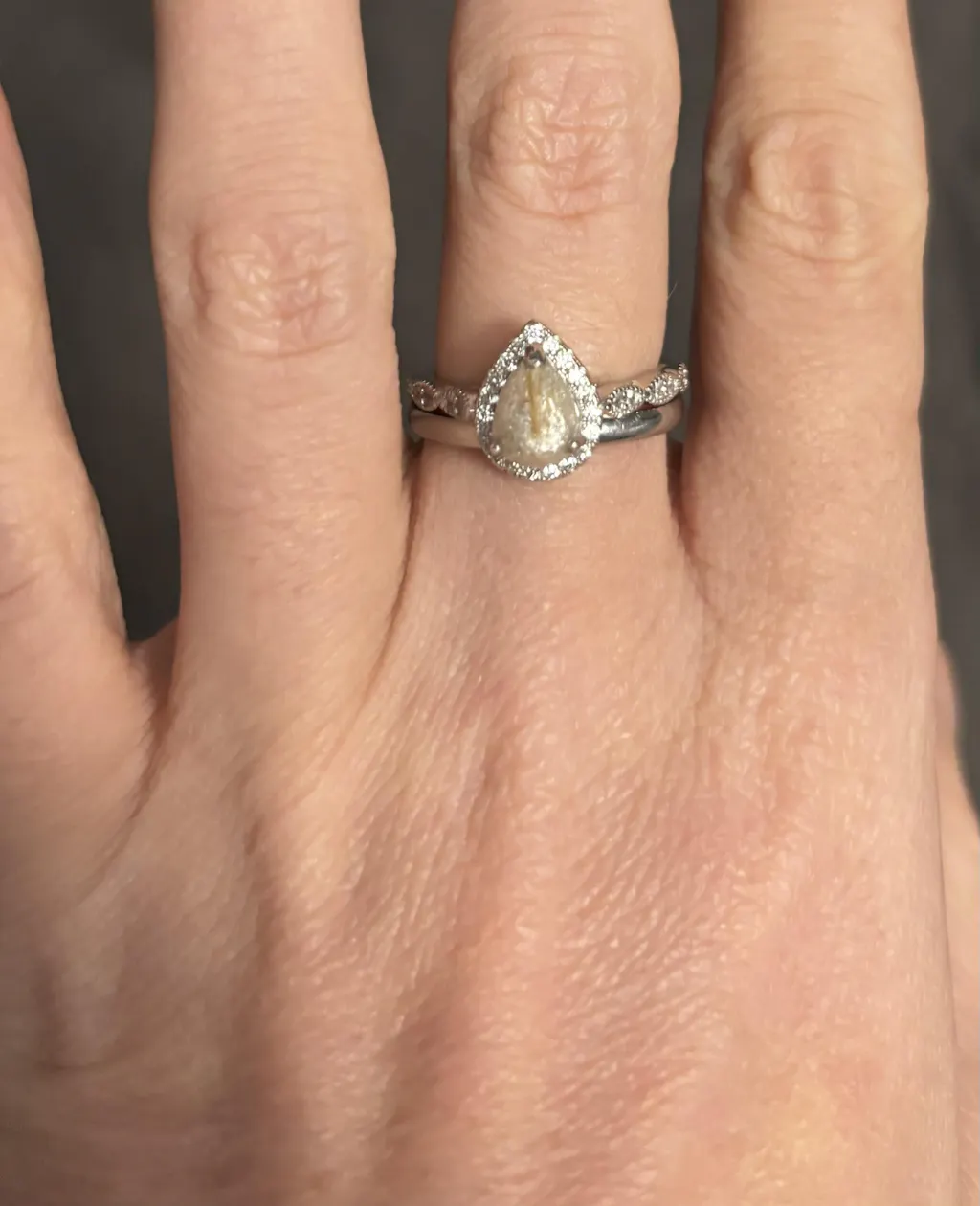 Sarah was so sweet and communicated very well throughout the whole process. The ring was PERFECT!! She included my sweet fur baby’s ashes and fur and it’s so beautiful!!