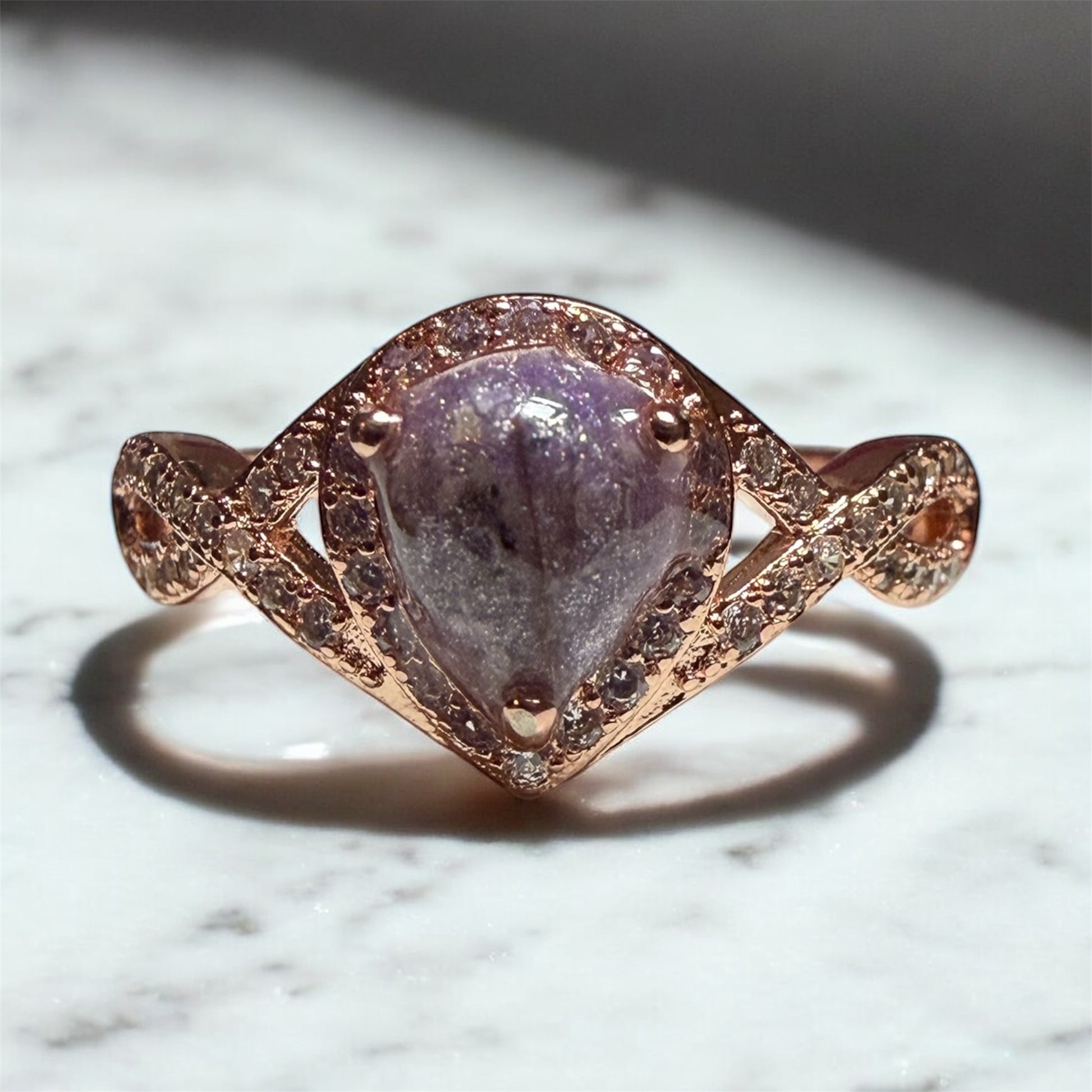 Absolutely love my ring!! Great detail and craftsmanship! There was awesome communication about what I wanted included, when ashes were received and when ring was sent out. The ring arrived very quickly. I would definitely recommend her to all my family and friends 💜