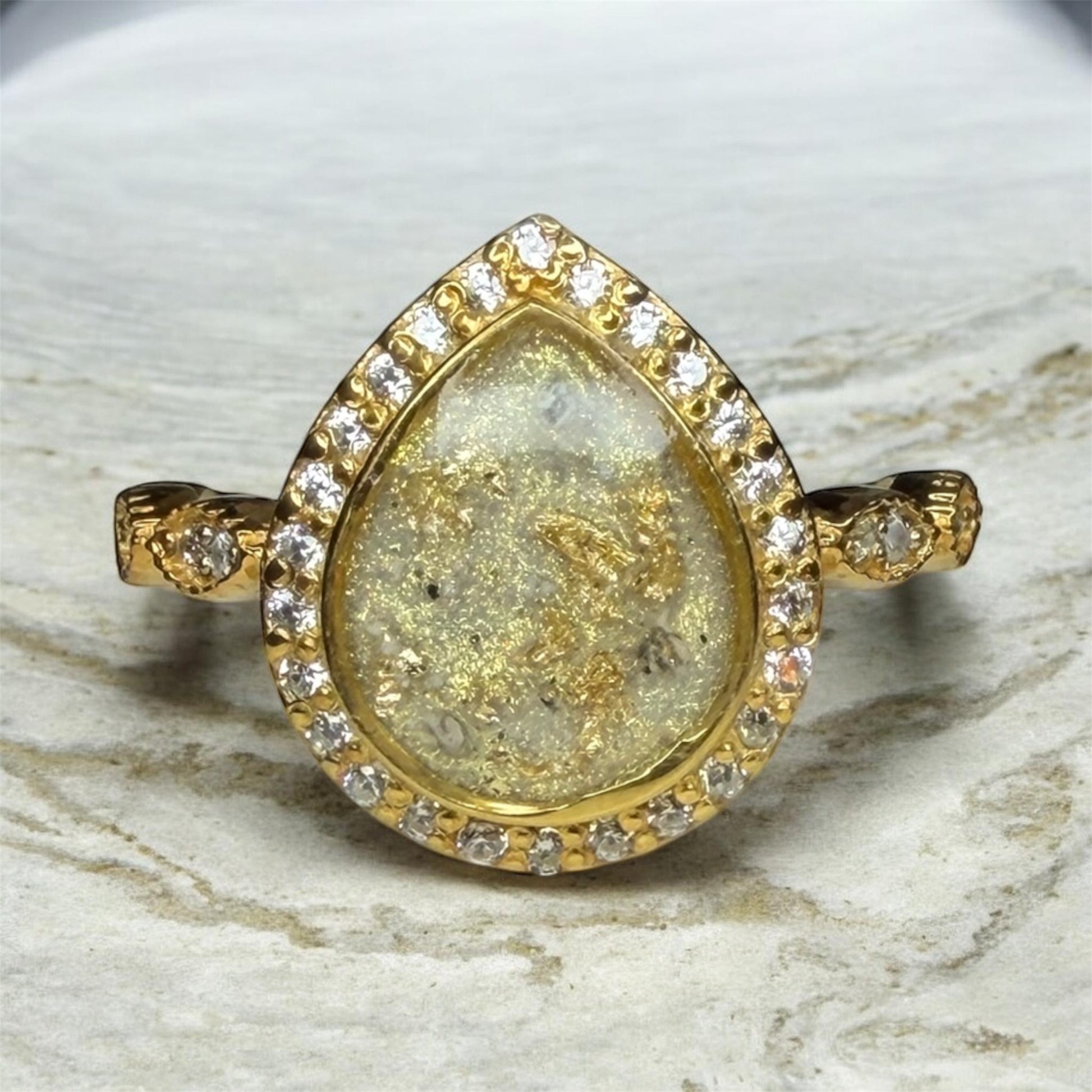 The Anna Sterling Silver Ring is more than just a beautiful accessory - it's a unique piece of custom jewelry that holds a special meaning. Crafted with care, it can commemorate the memory of a loved one through the custom option of cremation and breastmilk jewelry. Cherish your memories with this heartfelt piece.