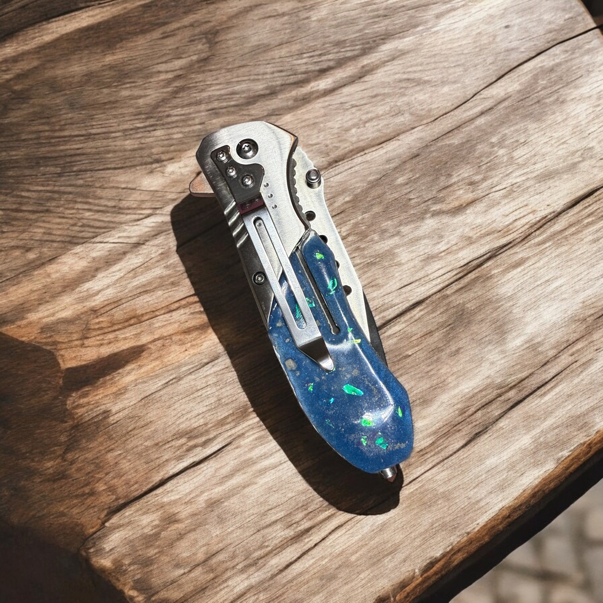 Crafted from premium materials, this custom pocket knife is a true keepsake. Its unique design incorporates your loved one's ashes, making it a meaningful tribute. Durable and compact, it's the perfect tool for everyday use and serves as a constant reminder of cherished memories.