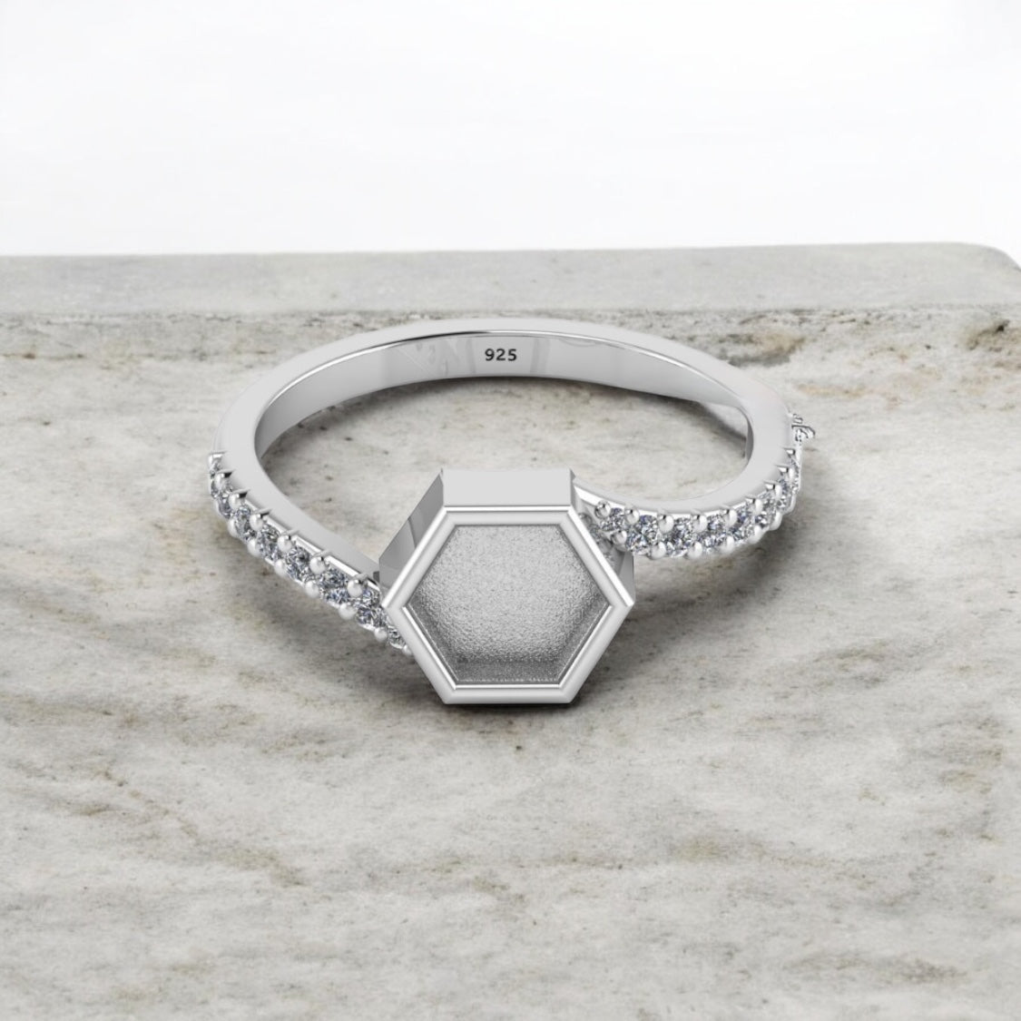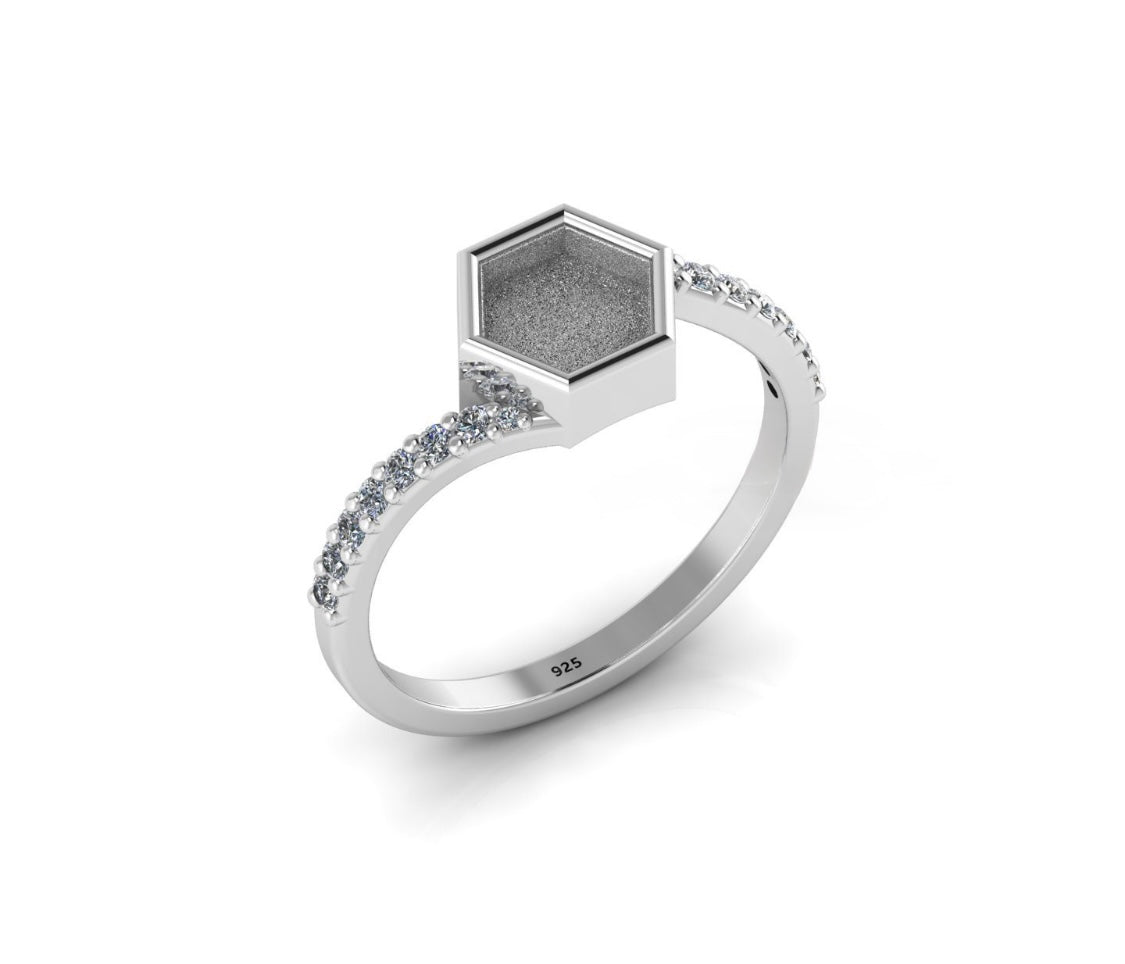 The Dakota Sterling Silver Ring is more than just a beautiful accessory - it's a unique piece of custom jewelry that holds a special meaning. Crafted with care, it can commemorate the memory of a loved one through the custom option of cremation and breastmilk jewelry. Cherish your memories with this heartfelt piece.